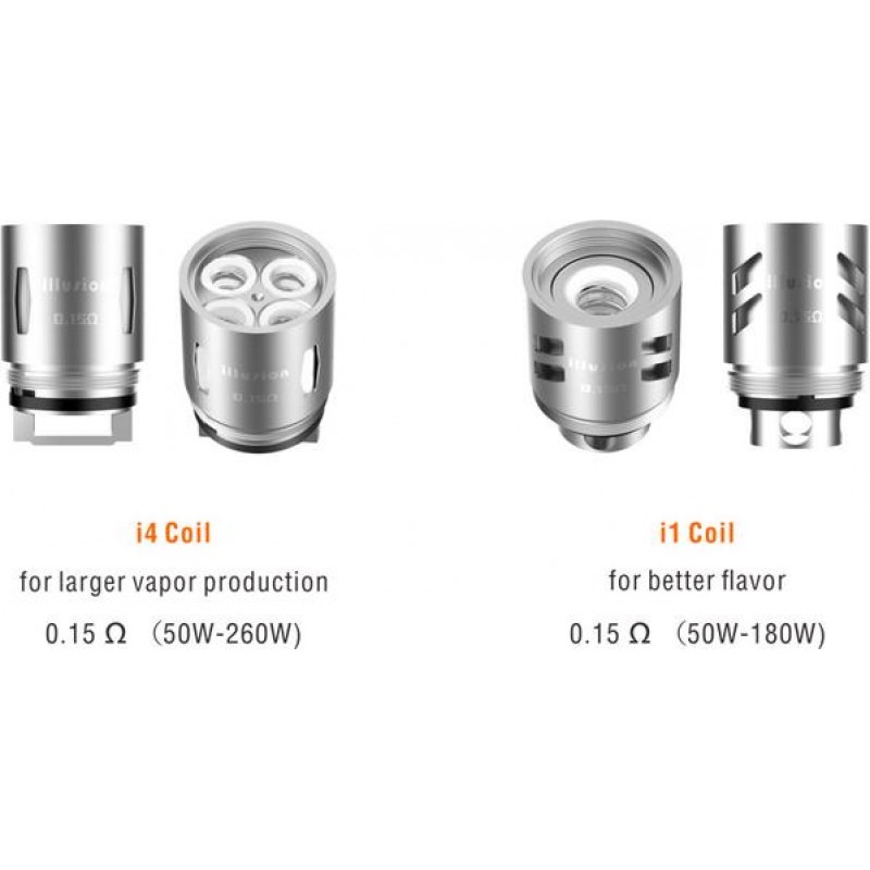 The Geekvape illusion I1 Coil is built with the optimized heating coil and the highest grade organic cotton. 0.15ohm resistance is a single parallel vertical coil design vape accessory, comes with the power range from 50w to 180w that brings outstanding vapor production.