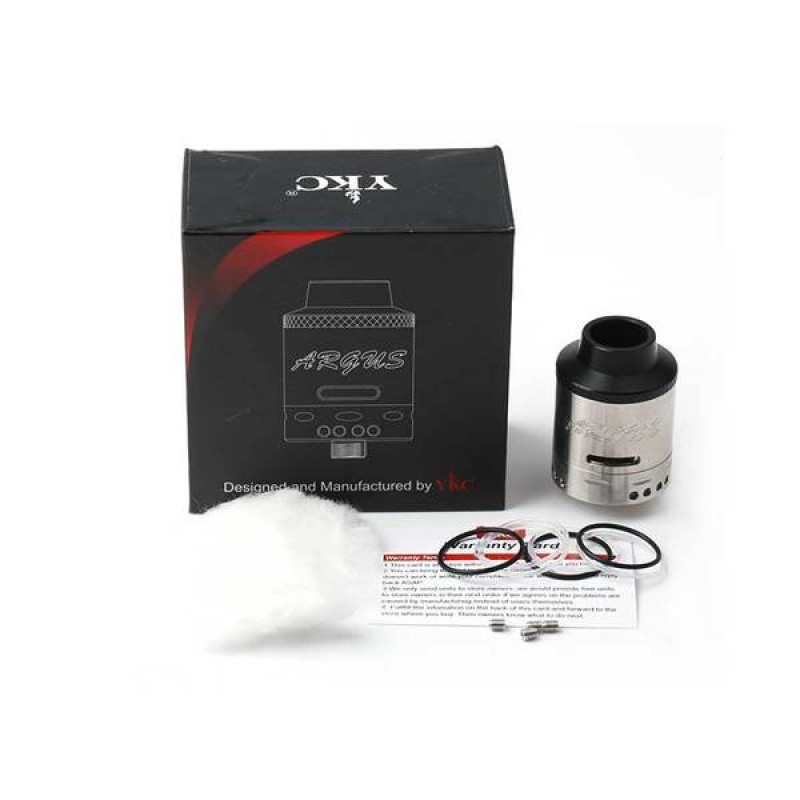 ARGUS TS TEM-SENSE RDA Tank Atomizer is a newly design with Durable Construction(dual coil deck), Delrin Drip Tip as well as Velocity deck,and the wide board base 25mm (with PEEK Insulator) for you to build with different wires. It also features temperature sense base with LED light. The light is green if temperature at 0-42~C, light is orange when temperature at 43-52~C and light is red if the temperature above 53~C.