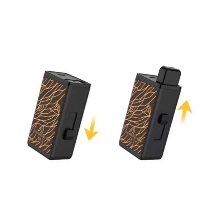 OBS Land Kit comes with other control on the mod is a lever style switch which you move up and down to retract or expose the pod. Retract the pod when not vaping to keep it clean and you will raise the pod to vape. The pods will have a 1.4ohm resistance coil head and will hold 1.5ml of your own e-liquid. There is an internal 750mAh battery which apparently will recharge in 1 hour via the USB port.